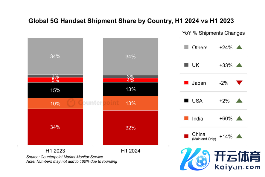 9月11日,Counterpoint Market Monitor工作的最新考虑效简直切,2024年上半年专家5G手机出货量同比增长20%。印度初次逾越好意思国,成为专家第二大5G手机商场,仅次于中国。
