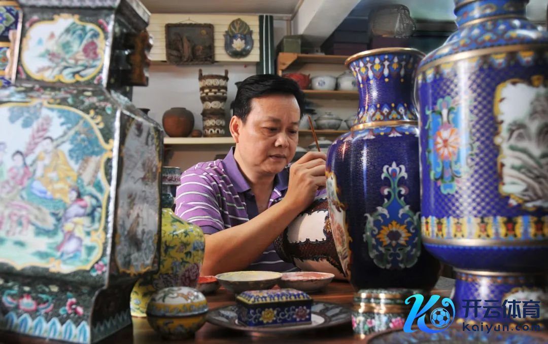 广州搪瓷传承东说念主——杨志峰正在制作搪瓷。