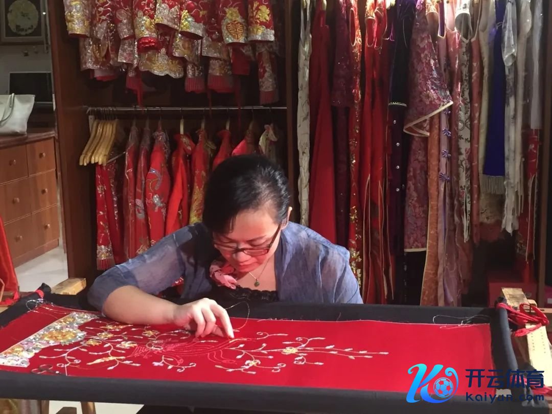 省级非遗名目钉金绣裙褂制作武艺-2020广东时装周秋季。