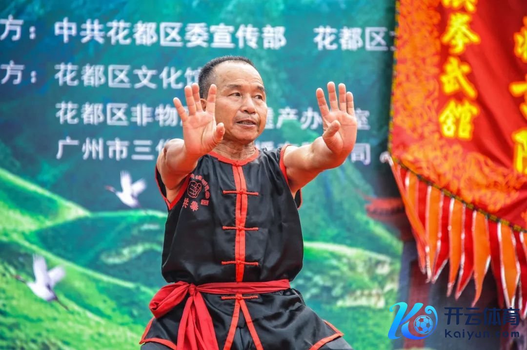 传承东说念主徐永路在花都非遗日行径中展示醒狮。