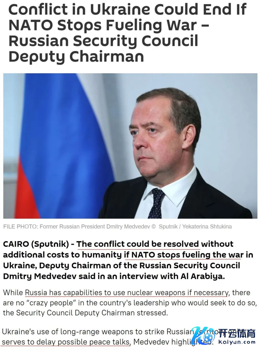 俄罗斯媒体23日报谈称,梅德韦杰夫此前一天示意,在必要时,俄罗斯天然会使用核火器,然则俄方不寻求那样作念。