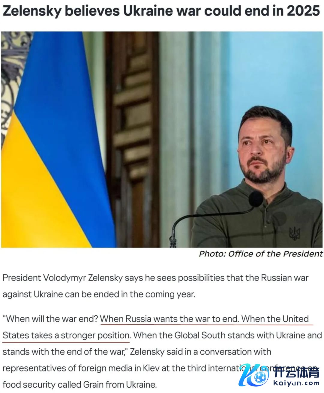 此外,乌克兰总统泽连斯基在第三届“乌克兰谷物”海外食粮安全会议框架内与异邦媒体交谈时示意,悉数有可能在2025年完了冲突。