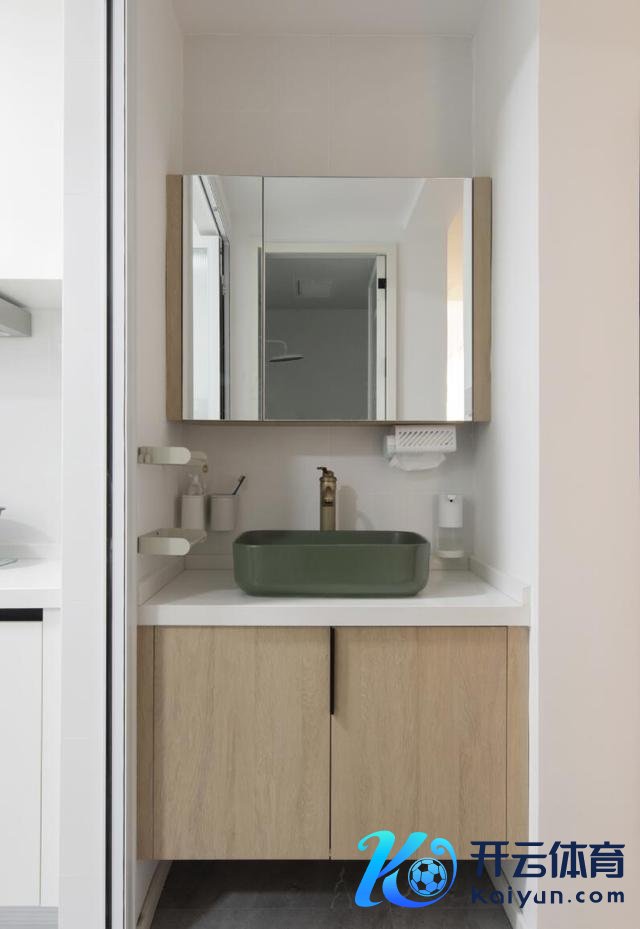 当卫生间空间压缩之后,台盆则移到了厨房附近,这么既让空间终明显干湿区分的结构,也最大化普及了空间使用率。而原卫生间里面,则确立马桶、淋浴花洒,确保了基本的功能性。