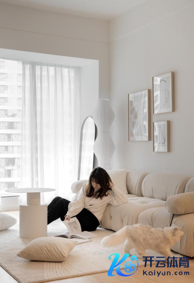 客厅化繁为简,以低饱和度的奶油色来定位,不仅带来了勤俭、干净的空间推崇,还尽显仁和与休养。尤其是垂感极佳的纱帘,更是让空间有了一点超脱般的灵动之好意思。