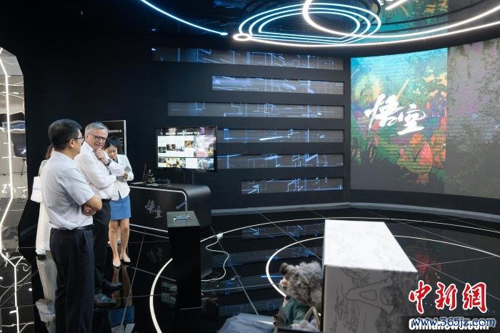 7月14日,外籍嘉宾在杭州明天科技城城市展馆了解游戏《黑传说:悟空》。 吴君毅 摄