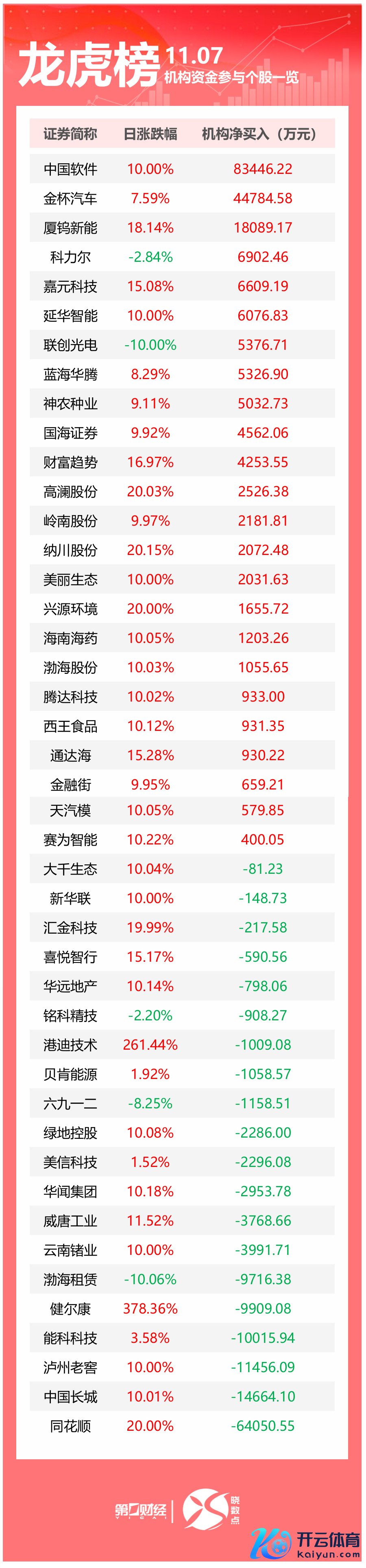 龙虎榜丨机构当天抛售这20股,买入中国软件8.34亿元龙虎榜丨机构当天抛售这20股,买入中国软件8.34亿元