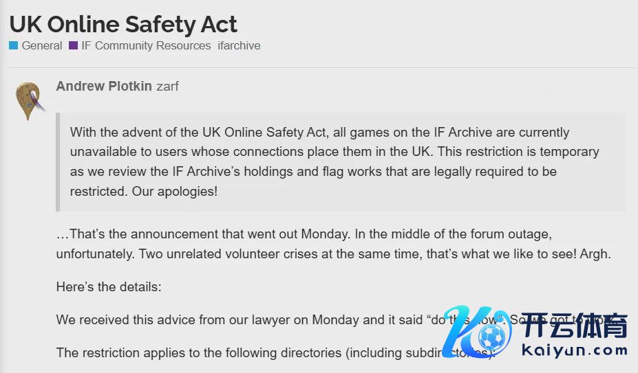 而关于好多中袖珍平台而言,为了避免潜在风险,干脆当先调度了探询权限,以至告成关闭了部分社区。比如交互式演义网站IF Archive,就在日前暂停了英国用户的探询: